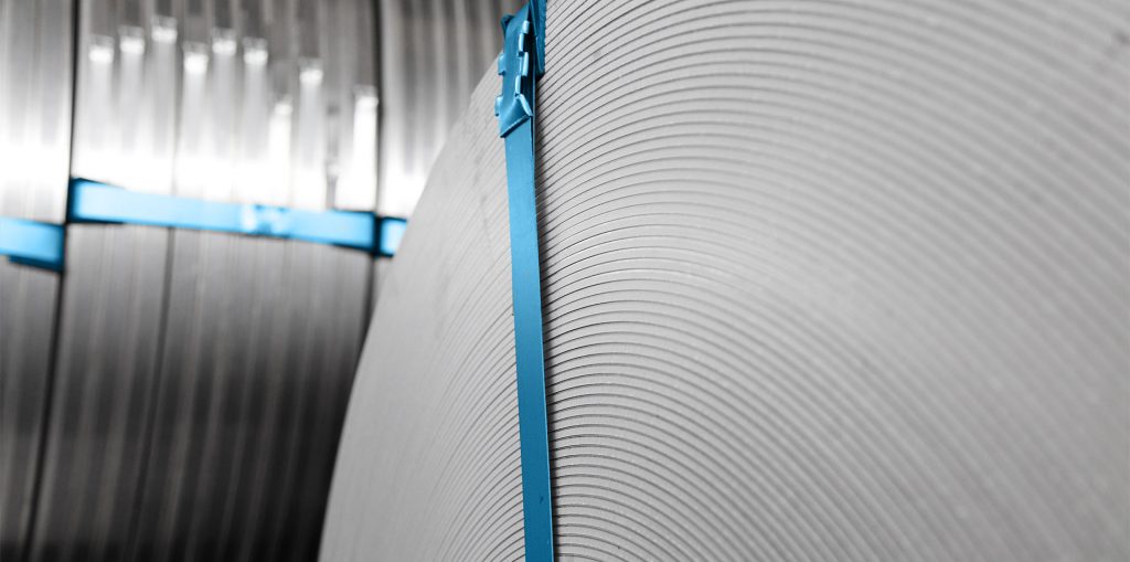 Marcegaglia liefert Standardverpackungen für C-Stahl-Bleche, darunter Quergurte, Längsgurte, Kantenschutz, Holzstücke, Paletten, Polyethylen-Bast und Metallkisten.